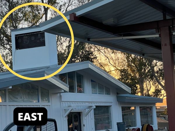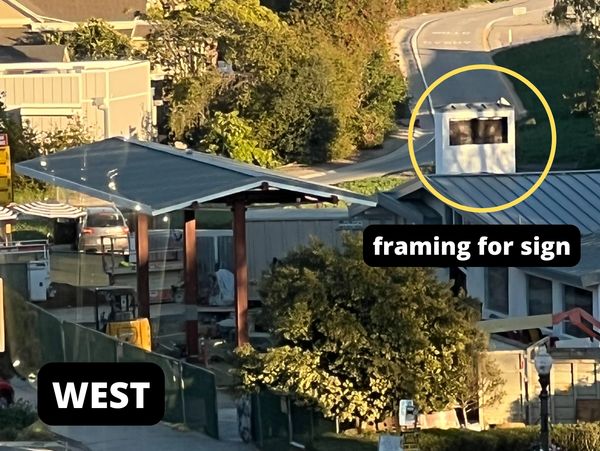 Sign framing does not appear to match location on plans, nor is there space for gooseneck lighting.