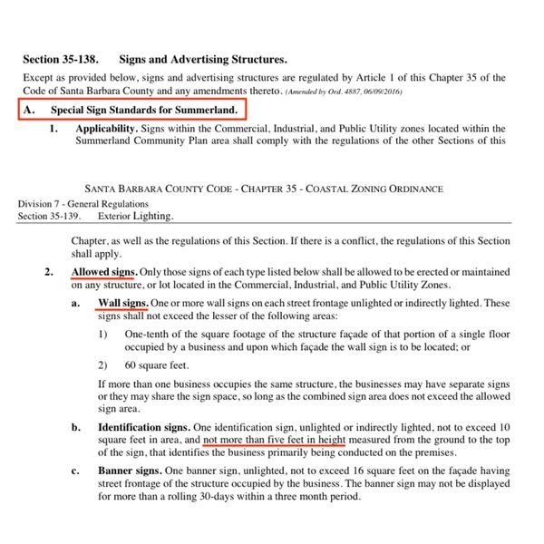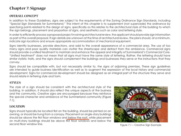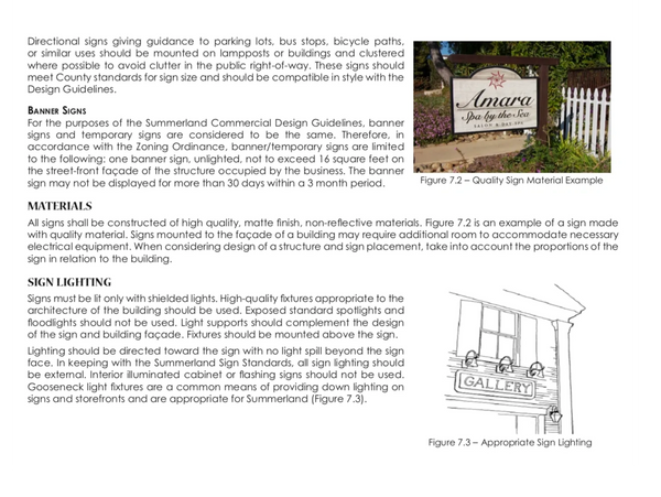 Multiple signage codes are applicable to Summerland commercial district that this project does not adhere to.
